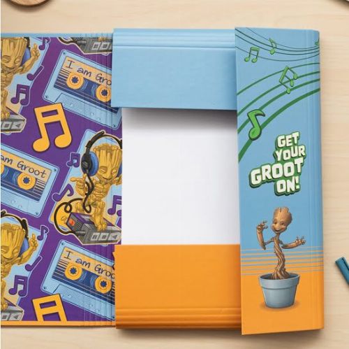 A Galaxis Őrőzi Groot gumis mappaMéret: 34 x 25,5 cmHivatalos Marvel termékA Galaxis Őrzői filmsorozat letarolta a világot. Rengetegen kedvelik a különleges szuperhősöket, akik izgalmas és sokszor veszélyes kalandokba keverednek újra – és újra! Köztük van egy igazán elszánt karakter is, aki bár nem beszél sokat, de a tettei sokatmondók:Ő Groot, aki képes volt feláldozni magát a barátaiért!Szerezd be ezt a hasznos kis gumis mappát, melynek oldalán a híres Groot kapott helyett, egy igazán látványos és vidám grafikán ábrázolva!