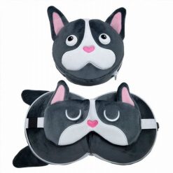 Összecsukható Francia Bulldog utazó nyakpárna szemtakaróval