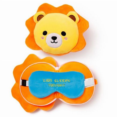 Összecsukható Oroszlán utazó nyakpárna szemtakaróval.