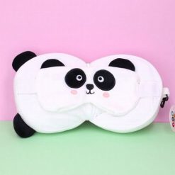 Összecsukható pandás utazó nyakpárna szemtakaróval.